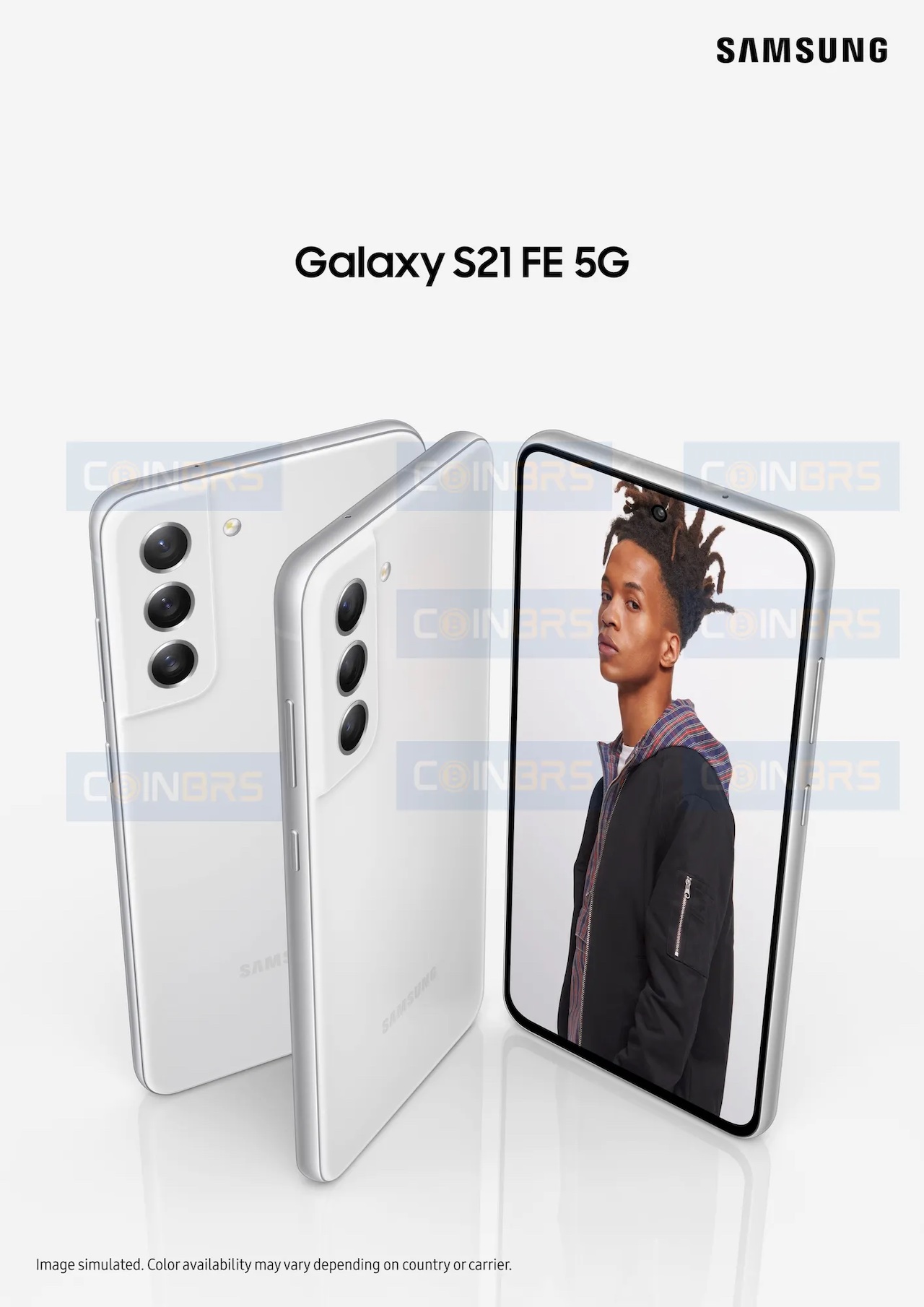 Galaxy S21 FE sẽ có các tùy chọn màu sắc là: White (Trắng), Lavender (Oải hương), Cream (Kem) và Black (Đen). Theo nguồn tin, thiết bị được dự kiến ra mắt vào tháng 1 năm 2022.