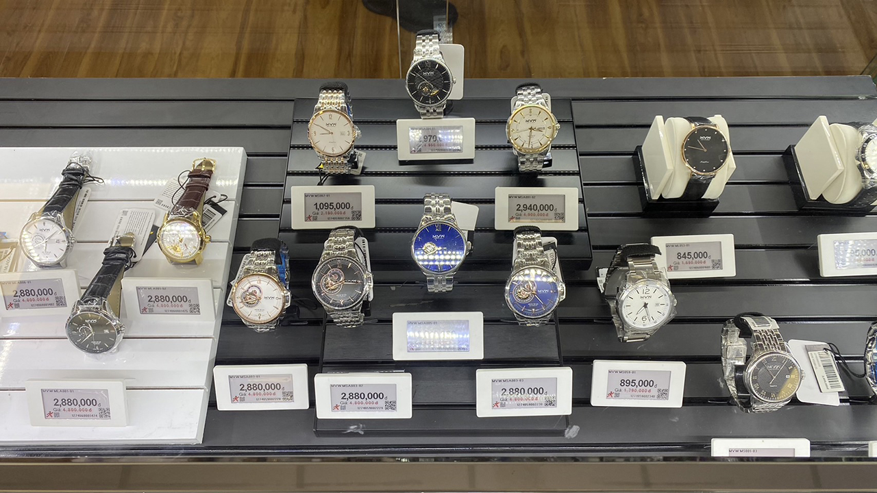 Các sản phẩm đồng hồ trưng bày trong tủ kính sang trọng hơn.