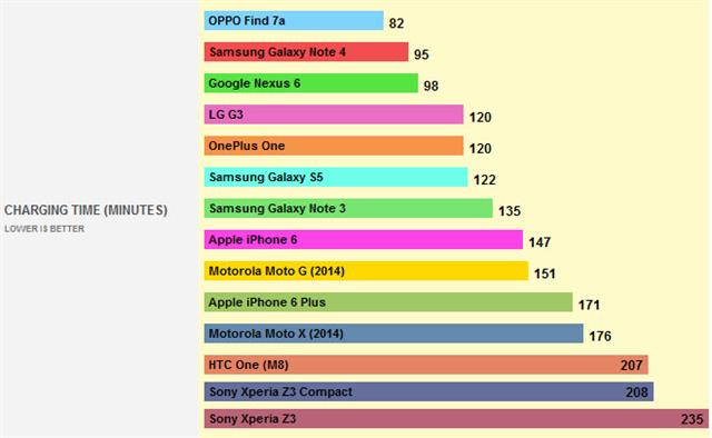 Bảng xếp hạng các smartphone có thời gian sạc nhanh nhất