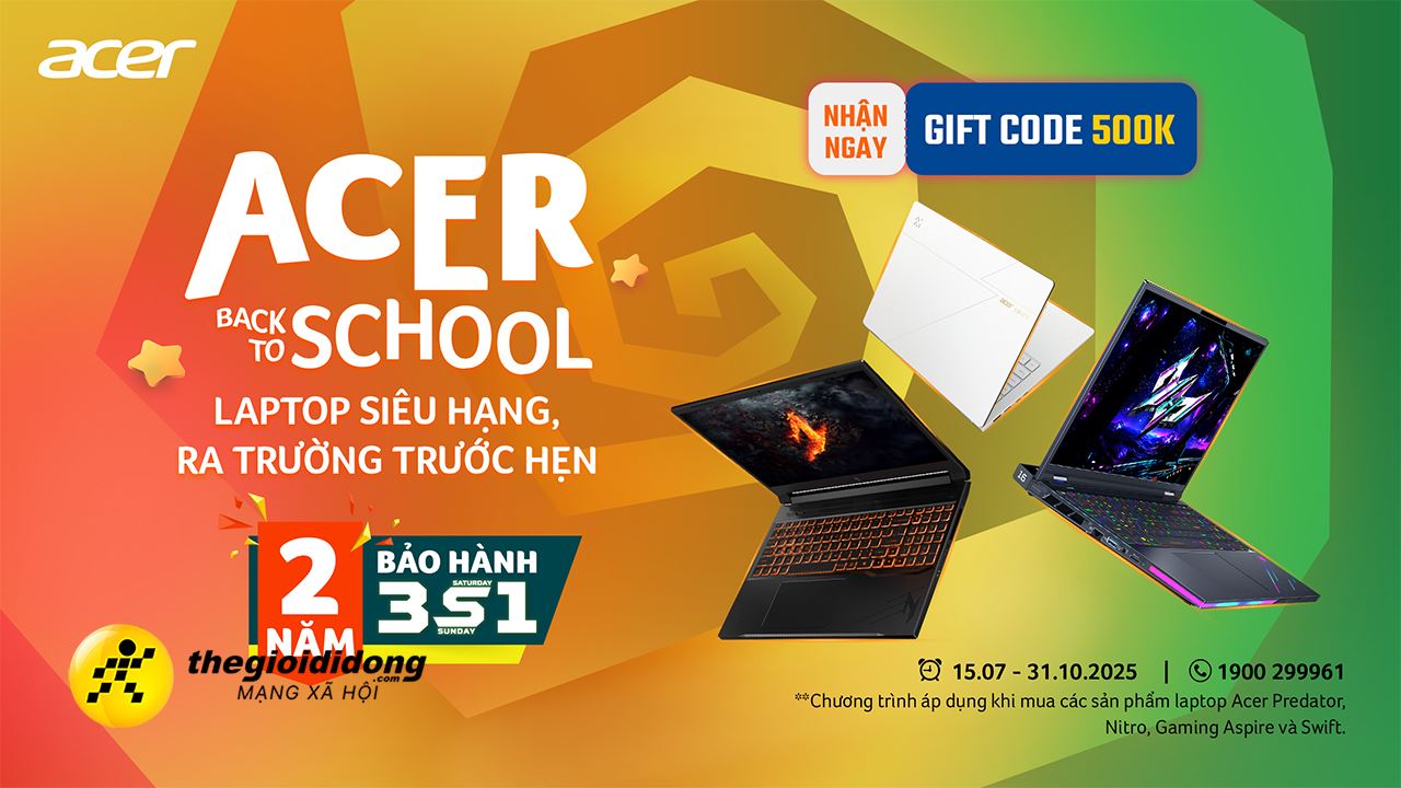 Acer Back to School 2025: Laptop siêu hạng, ra trường trước hẹn, tặng quà đến 500K khi mua tại TGDĐ ngày 15