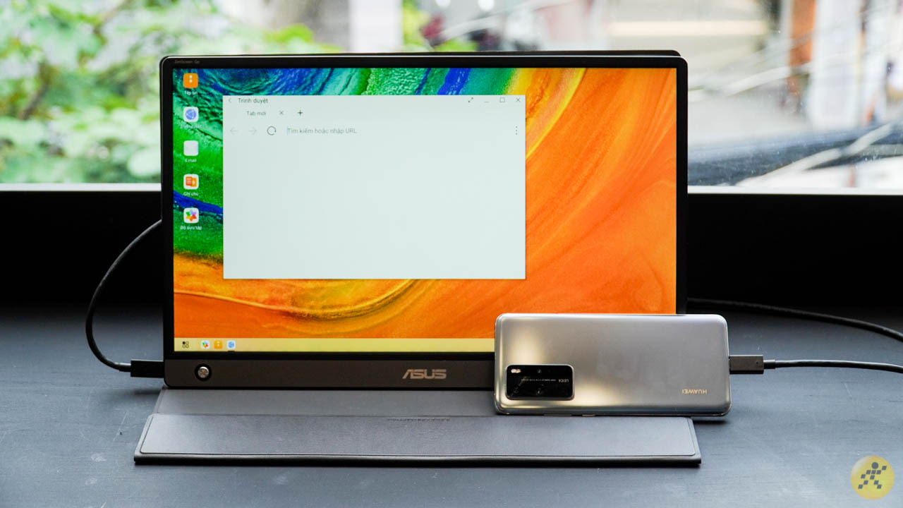 Nói đến khả năng kết nối với smartphone, ASUS ZenScreen Go cho phép bạn kết nối với rất nhiều thiết bị từ các nhà sản xuất khác nhau. Ở đây mình đã sử dụng Samsung Galaxy S20 Ultra và Huawei P40 Pro. Rất thú vị vì nếu bạn kết nối với Huawei, màn hình sẽ chuyển sang giao diện EMUI Destop và nếu bạn kết nối với điện thoại Samsung, màn hình sẽ chuyển sang Samsung Dex.
