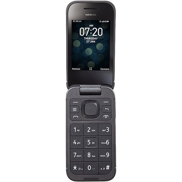 Ở mặt trước của Nokia 2760 Flip 4G là một màn hình hiển thị giờ có kích thước 1.77 inch , một ống kính 5 MP và đèn flash.