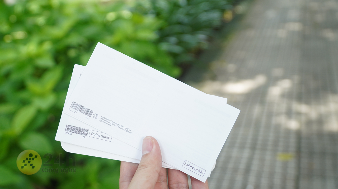 Mình khá bất ngờ với OPPO A55 ngay từ đầu bởi OPPO vẫn ưu ái mang đến cho chúng ta khá đầy đủ phụ kiện. Đi cùng OPPO A55 là sách hướng dẫn sử dụng, củ sạc, adapter sạc và cả ốp lưng trong nữa.