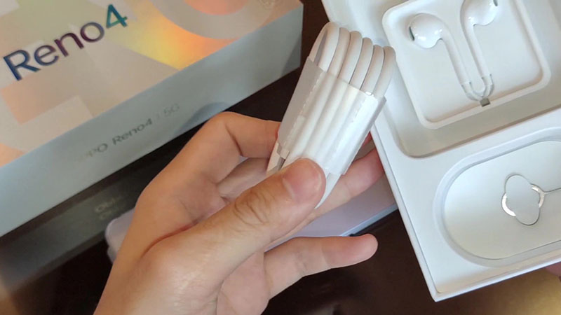 Phụ kiện đi kèm theo khi mua Reno4 như thường lệ vẫn sẽ bao gồm ốp lưng trong suốt, củ sạc Super VOOC 2.0 65W, cáp USB-C và tai nghe USB-C.