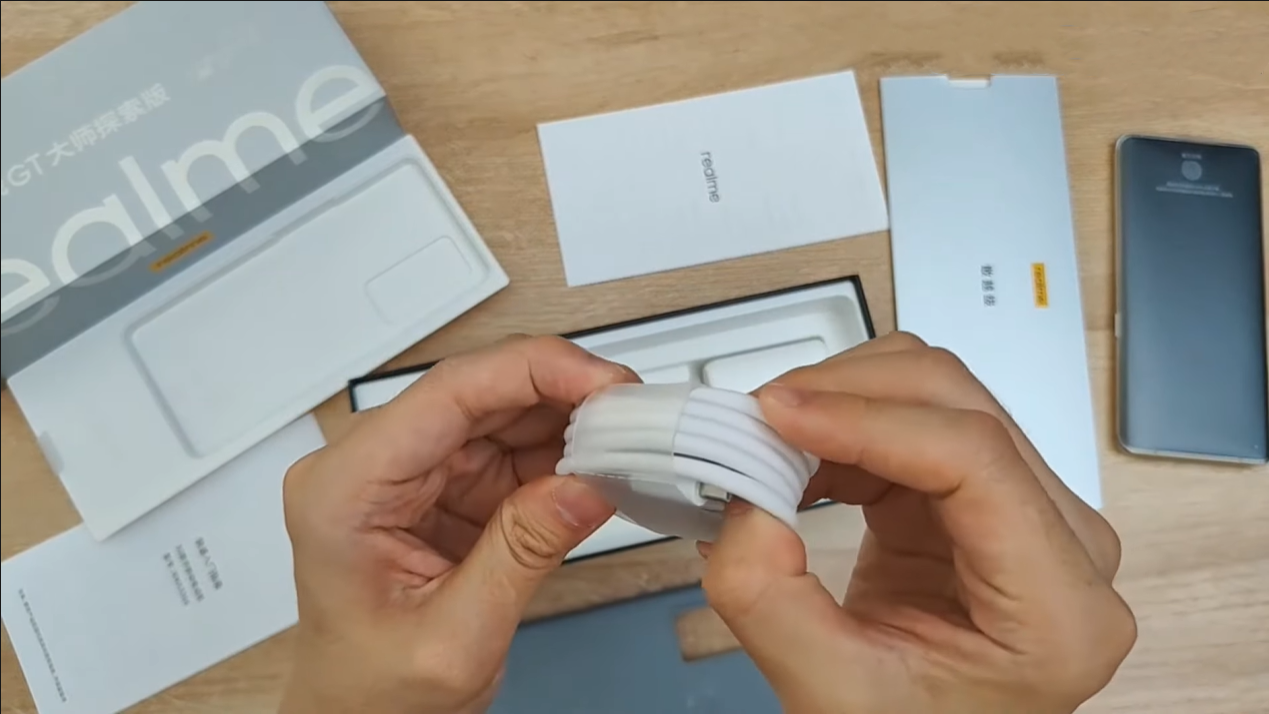 Tương tự như những sản phẩm khác của nhà Realme, Realme GT Master Explorer Edition cũng được đi kèm với rất nhiều phụ kiện khác bên trong hộp. Chúng ta sẽ nhận được sách hướng dẫn sử dụng, một que chọc SIM, một chiếc ốp lưng màu xám đen đi kèm thay vì là một chiếc ốp trong suốt, cáp sạc cùng với đó là một cục sạc hỗ trợ sạc nhanh SuperDart với công suất lên đến 65W.