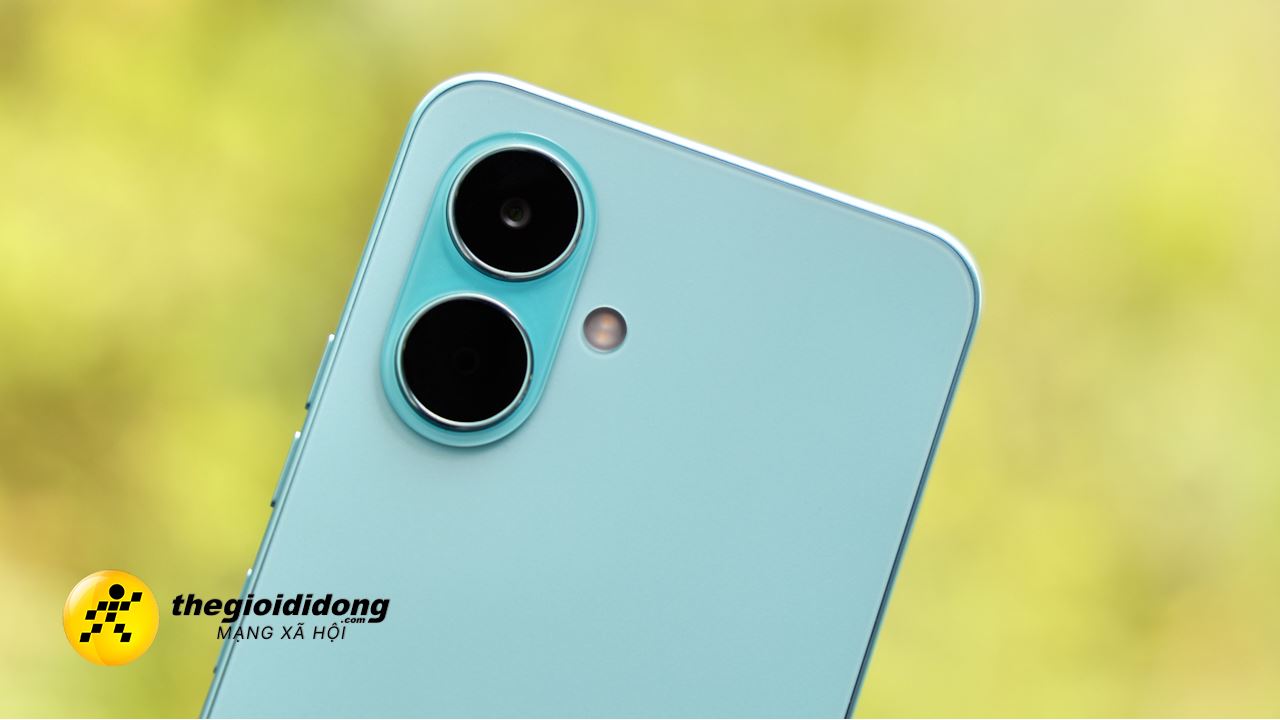 Cụm camera sau hình viên thuốc với hai ống kính, nhưng chỉ một camera chính 13 MP, tạo điểm nhấn hiện đại giống iPhone. Cụm camera lồi nhẹ, nhưng không gây bập bênh khi đặt bàn. Máy có bốn màu sắc Đen, Xám, Xanh Mint, Trắng phù hợp từ tối giản đến trẻ trung.