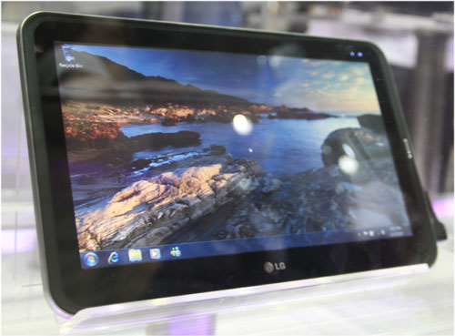 | UX10 của LG sử dụng chip Intel Atom Z530, hệ điều hành Windows 7. Máy này màn hình 10,1 inch, RAM DDR2 1GB, pin 7.200 mAh. UX10 còn được trang bị webcam 1,3 Megapixel, khe cắm thẻ SD, HDD 120 GB. |