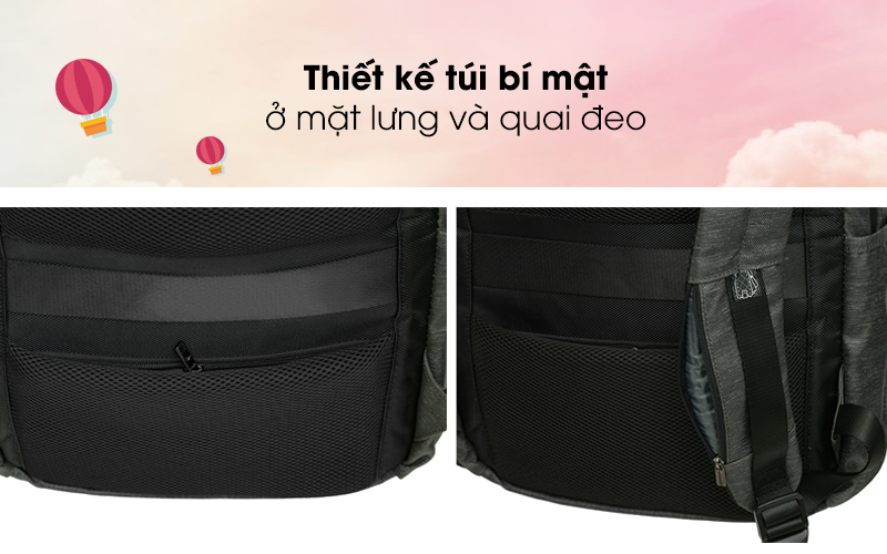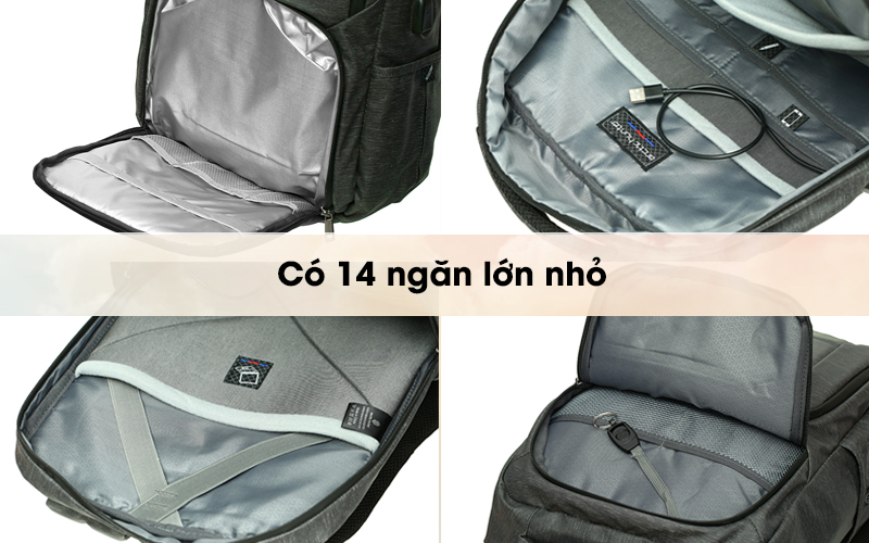 Ngăn chứa chính rộng, chứa được laptop 15.6 inch, điện thoại, tablet, pin sạc, sách và nhiều vật dụng khác. Đặc biệt, bên trong ngăn phụ có dây cài móc khóa cho người dùng dễ dàng tìm kiếm. Ngoài ra hai bên hông có hai ngăn riêng biệt dùng để đựng chai nước hoặc dù.