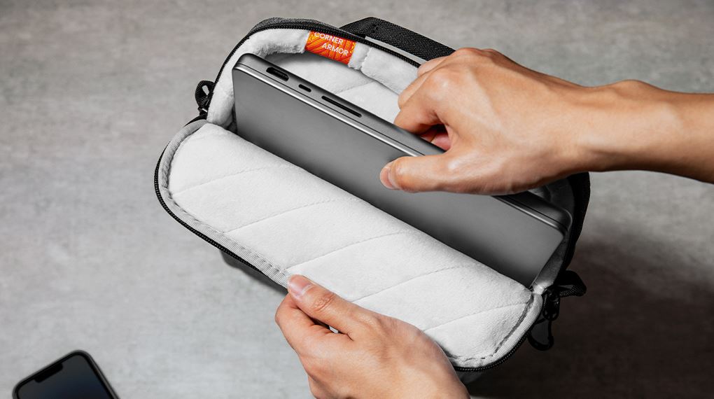 Tomtoc trang bị cho túi đeo chéo này hệ thống đệm bảo vệ dày và êm, được bố trí quanh thân túi để giảm thiểu tối đa tác động từ bên ngoài. Khoang chính được thiết kế vừa khít, giúp laptop cố định chắc chắn trong quá trình di chuyển.