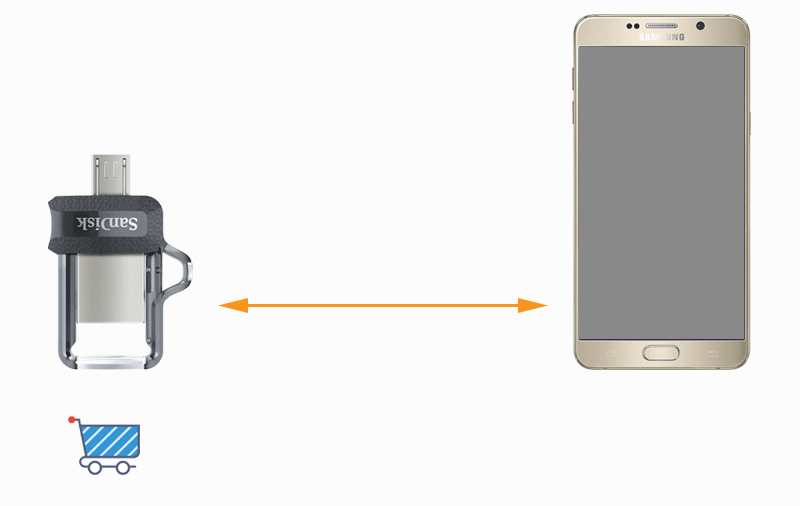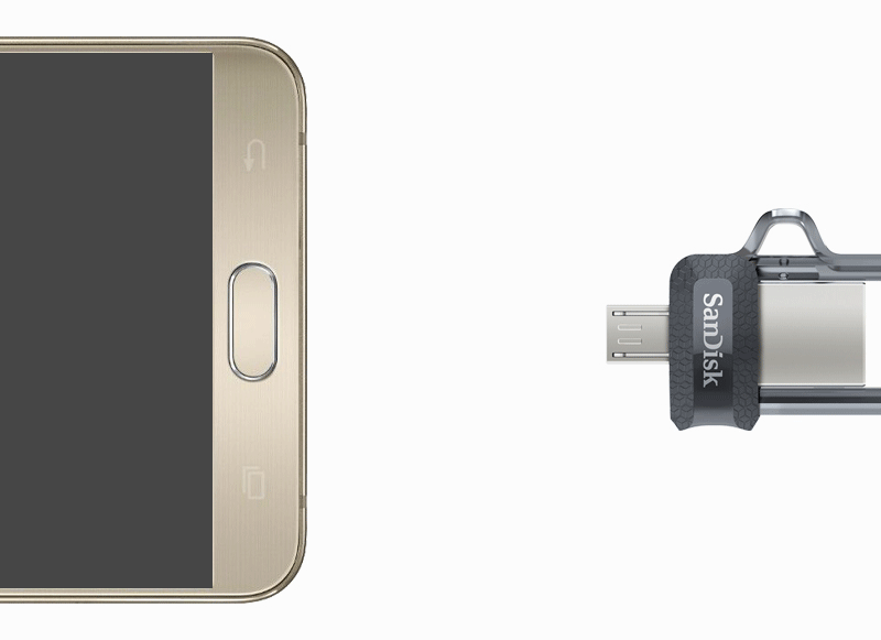 Do là USB OTG nên sẽ có 2 đầu cổng USB và 1 đầu nữa là Micro USB để gắn vào điện thoại (không dùng được với iPhone/iPad và máy có cổng Type-C).