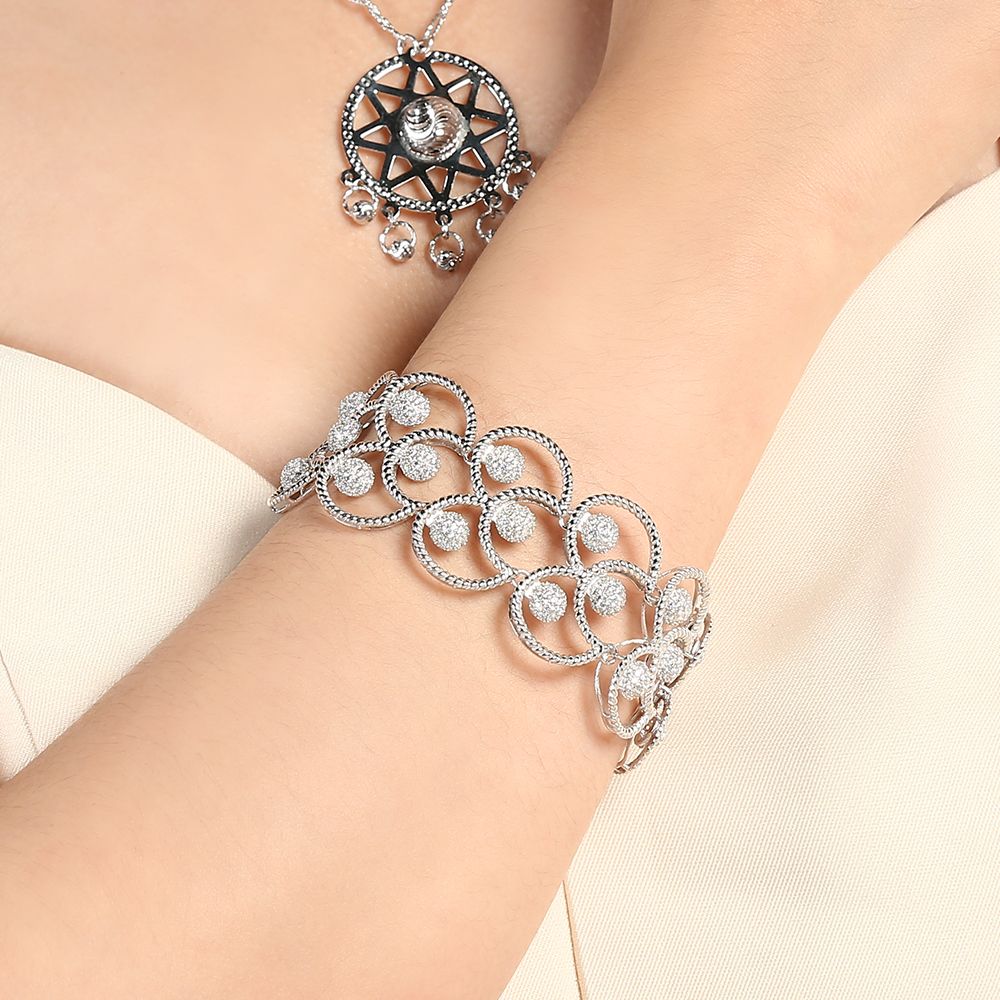 Vòng tay bạc Nữ AVAJi đính đá xi trắng BJ.B000070 - món trang sức tuyệt vời tạo điểm nhấn cho đôi tay thon dài, nữ tính, nổi bật với thiết kế tinh tế, sang trọng cùng những họa tiết vô cùng tỉ mỉ và tinh xảo.